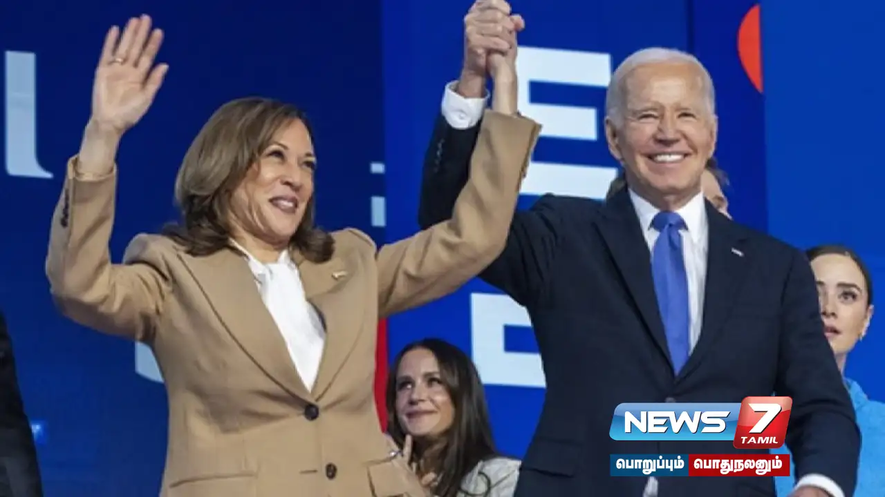 அமெரிக்காவில் வரும் நவம்பரில் அதிபர் தேர்தல் நடைபெற இருக்கிறது. இதில் ஆளும் ஜனநாயக கட்சி சார்பில் முதலில் பைடன் போட்டியிட இருந்த நிலையில், பல காரணங்களால் அவர் போட்டியில் இருந்து விலகினார்.