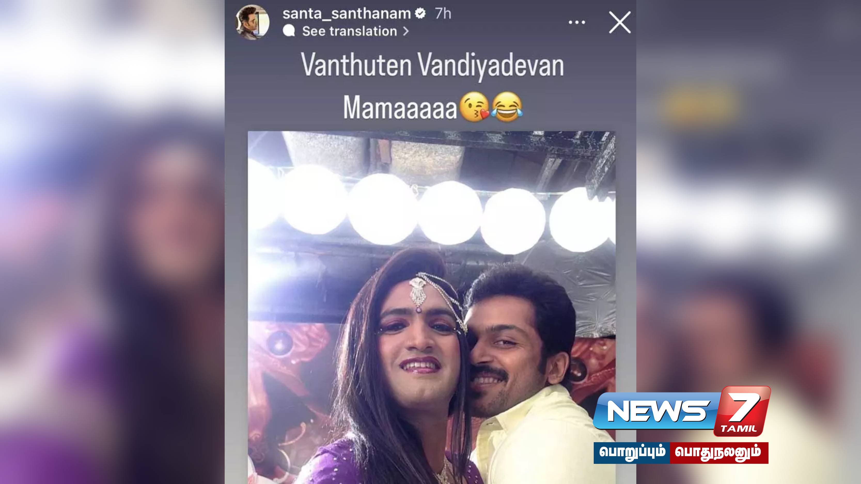 இந்நிலையில் இதற்கு நடிகர் சந்தானம் ”வந்துட்டேன் வந்தியதேவன் மாமா” என்று கார்த்தியை டேக் செய்து தனது இன்ஸ்டாகிராம் ஸ்டோரியில் பதிவிட்டுள்ளார். இந்த பதிவு தற்போது ரசிகர்கள் பலரும் வைரலாக்கி வருகின்றனர். இந்த பதிவு தற்போது வைரலாகி வருகிறது.