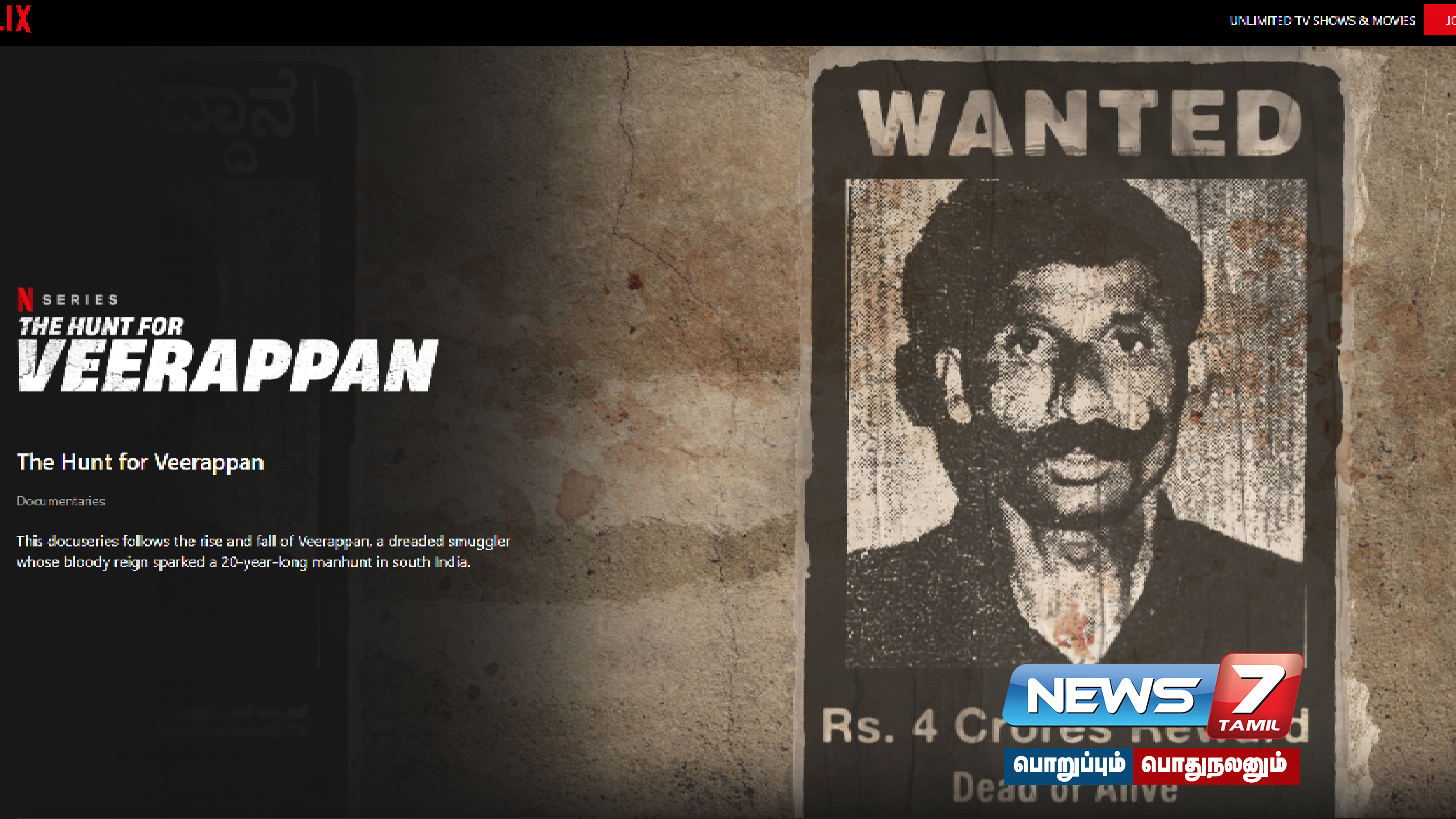 இந்நிலையில், நெட்ஃப்ளிக்ஸ் ஓடிடி நிறுவனம் வீரப்பன் வாழ்கை வரலாறு குறித்து “தி ஹண்ட் ஃபார் வீரப்பன்” என்னும் பெயரில் ஆவணத்தொடர் ஒன்றை தயாரித்துள்ளது. இந்த தொடர் நெட்ஃப்ளிக்ஸ் இணையத்தளத்தில் ஆகஸ்ட் 4ம் தேதி வெளியாகிறது.