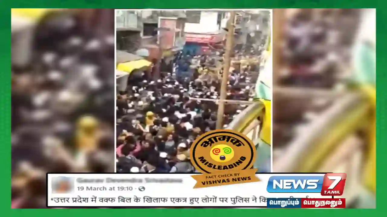 ‘கௌரவ் தேவேந்திர ஸ்ரீவஸ்தவ்’ என்ற பேஸ்புக் பயனர் மார்ச் 19, 2025 அன்று இந்த வைரல் காணொலியைப் பகிர்ந்து, “உத்தரபிரதேசத்தில் வக்ஃப் மசோதாவுக்கு எதிராக கூடியிருந்த மக்களை போலீசார் தடியடி நடத்தினர்” என்ற தலைப்பில் எழுதினார். பதிவின் காப்பக இணைப்பை இங்கே காண்க .