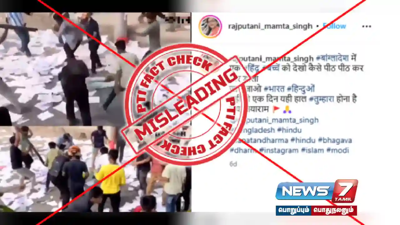 வங்கதேசத்தில் இந்து சிறுபான்மையினருக்கு எதிரான வன்கொடுமை வழக்குகள் அதிகரித்து வருவதாக செய்திகள் வெளியாகி வரும் நிலையில், இந்து மாணவர் ஒருவர் தாக்கப்பட்டதாக சமூக ஊடகங்களில் செய்திகள் பகிரப்பட்டது. டாக்காவில் செயல்பட்டு வரும் டாக்டர் மஹ்புபுர் ரஹ்மான் மொல்லா கல்லூரியில் மாணவர் தாக்கப்பட்டதில் மரணமடைந்ததாக வீடியோ, வைரல் பதிவுகளுடன் பரவியது. அதில் ஒரு கும்பல் ஒரு மாணவரை கம்புகளால் தாக்கும் காட்சிகள் இடம்பெற்றிருந்தன. இந்த வீடியோ குறித்த விசாரணையில், PTI Fact Check Desk இந்த கூற்று தவறானது என்று கண்டறிந்தது. கடந்த மாதம் வங்கதேசத்தில் உள்ள மூன்று கல்லூரிகளைச் சேர்ந்த மாணவர் குழுக்களுக்கு இடையே ஏற்பட்ட வன்முறை மோதல்கள் குறித்த வீடியோ தவறாக மதக் கண்ணோட்டத்துடன் பகிரப்பட்டு வருகிறது.