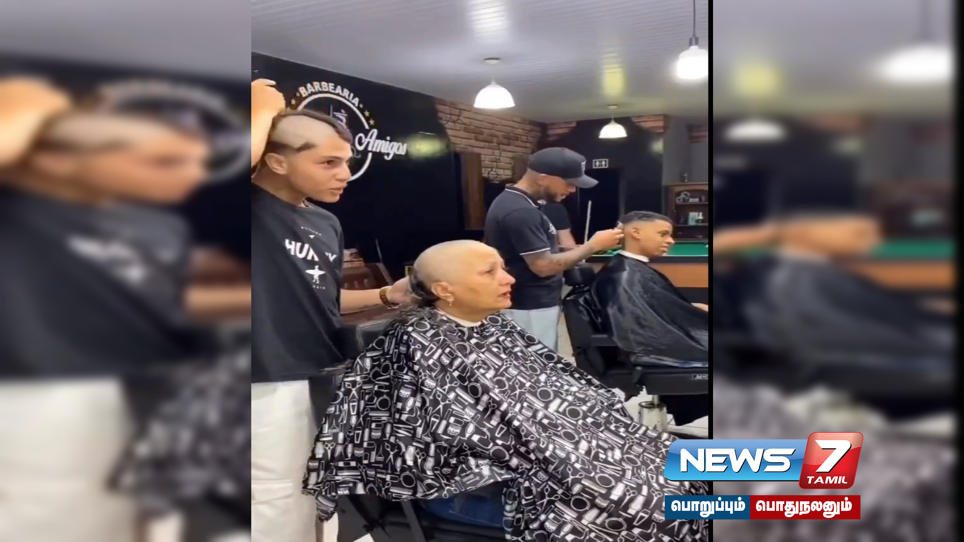 புற்றுநோய் வந்தவர்களுக்கு அளிக்கப்படும் ஹீமோதெரபி போன்ற சிகிச்சைகளால் அவர்கள் முடி கொட்டும். இதனால் அவர்கள் தங்கள் தலைமுடியை மொட்டை அடித்து கொள்வார்கள். அது போல முடிதிருத்தும் தொழிலாளி ஒருவர், புற்றுநோயால் பாதிக்கப்பட்ட தனது தாயின் தலைமுடியை மொட்டையடிக்கிறார். பின் தனது அம்மாவுக்கு ஆதரவாக தானே தனது தலையை மொட்டையடிப்பதையும் அவரது நண்பர்களும் சேர்ந்து மொட்டை அடித்துக்கொண்டு உணர்ச்சி பூர்வமாக அவர் தாய்க்கு ஆதரவளிக்கும் காட்சி இணைய தளத்தில் வைரல் ஆகி வருகிறது.