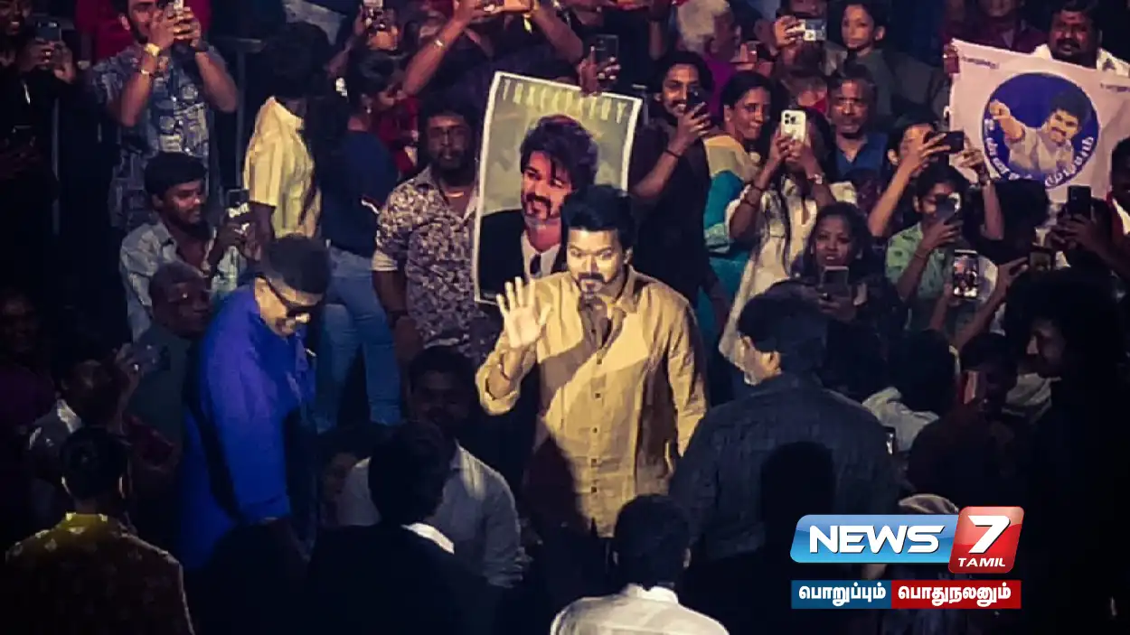 கடைசியாக அனைவரும் ஆவலுடன் எதிர்பார்த்து காத்துக்கொண்டிருந்த நடிகர் விஜய் பின்னணி இசை உடன் அரங்கத்தில் நுழைந்துள்ளார். அவர் நுழைந்தவுடன் அவரை பார்த்த ரசிகர்கள் அனைவரும் தளபதி தளபதி என கரகோஷமிட்டனர். இது தொடர்பான வீடியோக்கள் சமூக வலைத்தளங்களில் வைரலாகி வருகிறது.