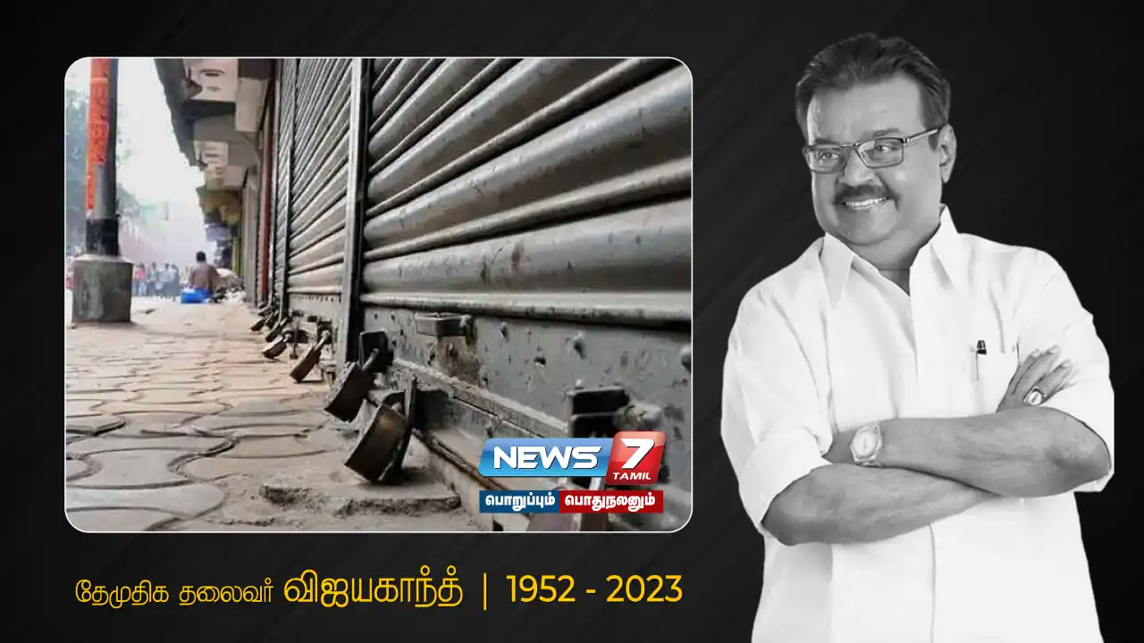 விஜயகாந்த் மறைவையொட்டி சீர்காழி மற்றும் தஞ்சை மாவட்டம் ஆடுதுறையில் வியாபாரிகள் கடையடைத்து இரங்கலை தெரிவிப்பதாக அறிவித்துள்ளனர்.