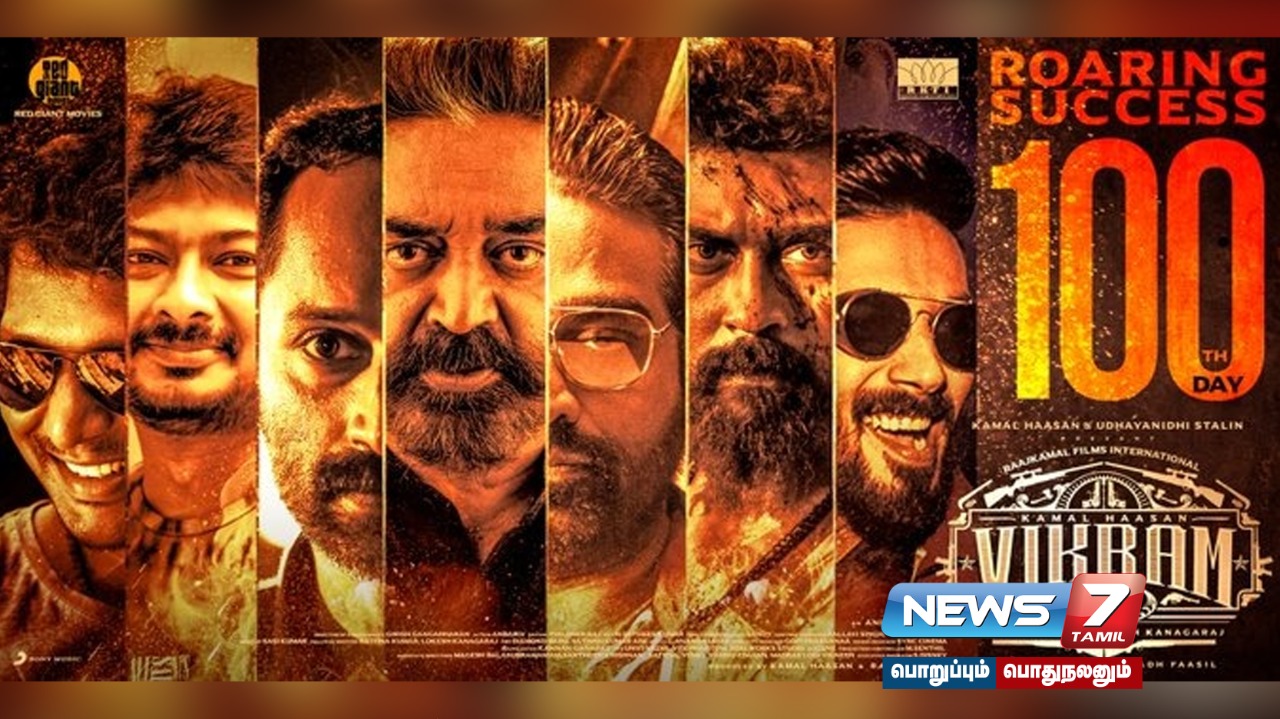 ‘விக்ரம்’ திரைப்படம் 100 வது நாளை எட்டிய நிலையில் நடிகர் கமல்ஹாசன் தனது சமூக வலைதளப்பக்கத்தில் அறிவிப்பு ஒன்றை வெளியிட்டுள்ளார்.