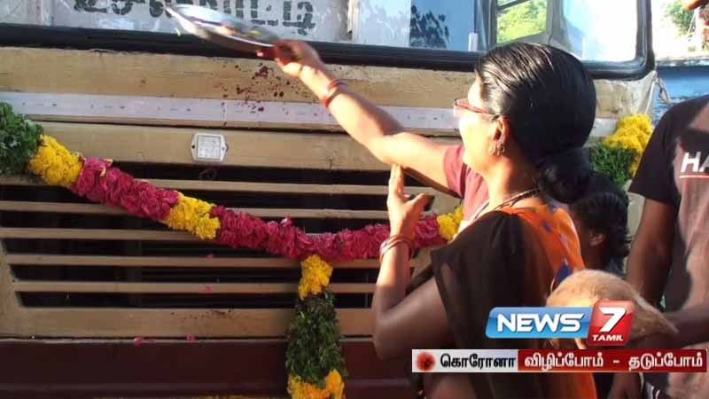 மதுரை மாவட்டம் உசிலம்பட்டி அருகே பத்து ஆண்டுகளுக்கு பின் கிராமத்திற்கு வந்த அரசு பேருந்திற்கு கிராம மக்கள் மாலை அணிவித்து, ஆரத்தி எடுத்து உற்சாக வரவேற்பு அளித்தனர்.