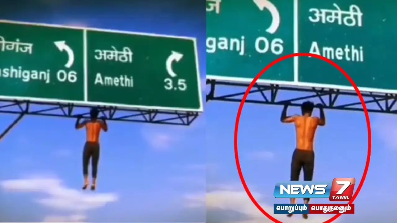 அதன்படி, உத்தரப்பிரதேச மாநிலம் அமேதியில் 30 அடி உயரத்தில் உள்ள நெடுஞ்சாலை பெயர்ப்பலகையின் மீது இளைஞர் ஒருவர் ஏறி உடற்பயிற்சி செய்துள்ளார். இந்த வீடியோ இணையத்தில் வெளியாகி பெரும் அதிர்ச்சியை ஏற்படுத்தியுள்ள நிலையில், இது தொடர்பாக விசாரணை நடைபெற்று வருவதாகவும் சம்பந்தப்பட்ட நபர்கள் மீது உரிய நடவடிக்கை எடுக்கப்படும் என்றும் அமேதி போலீசார் தெரிவித்தனர்.