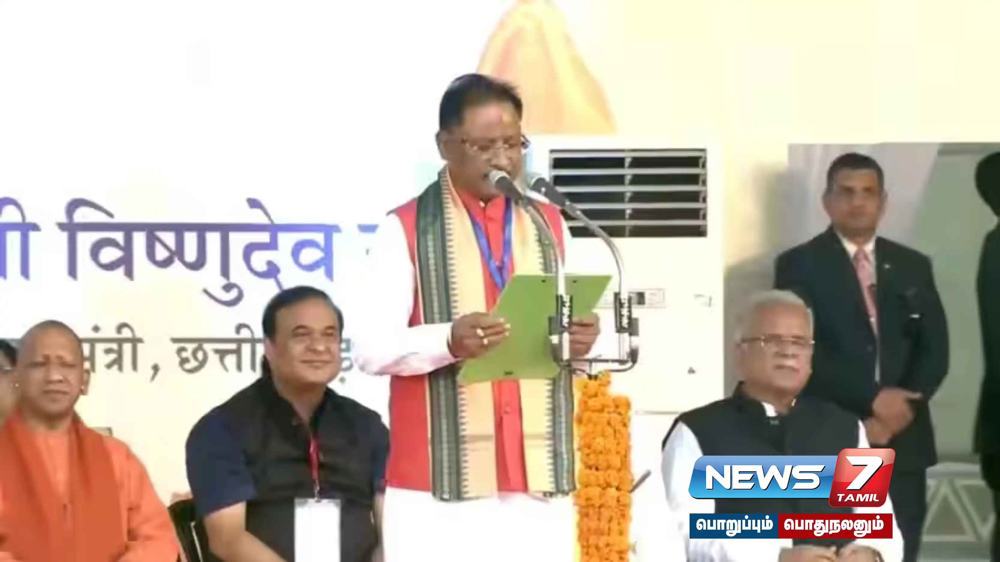சத்தீஸ்கர் முதலமைச்சராக விஷ்ணு தியோ சாய் பதவியேற்றார். அவருக்கு ஆளுநர் பிஸ்வபூஷன் ஹரிசந்தன் பதவிப் பிரமாணம் செய்து வைத்தார்.