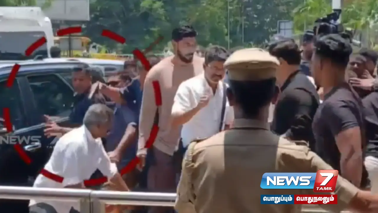 இந்த நிலையில் விஜய், படப்பிடிப்பை முடித்துவிட்டு மதுரை விமான நிலையம் வந்தார். அப்போது ஏராளமான தொண்டர்கள் அவரை சூழ்ந்து அன்பை வெளிப்படுத்தினர். அந்த வகையில் விஜய் மக்கள் இயக்கத்தின் முன்னாள் மாவட்ட தலைவரான இன்பராஜ் என்பவர் விஜய்யை சந்தித்து சால்வை அணிவிக்க வருகை தந்தார்.