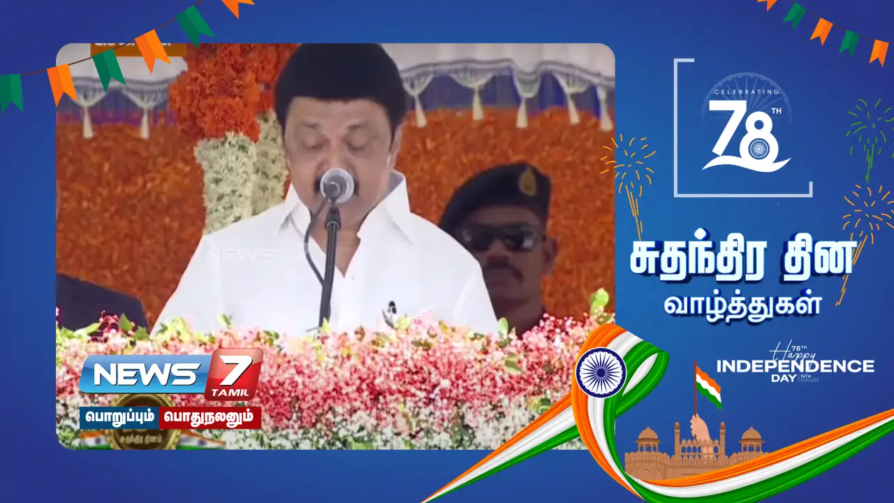 இந்தியாவின் 78- வது சுதந்திரதின விழா நாடு முழுவதும் இன்று கோலாகலமாக கொண்டாடப்படுகிறது. தமிழ்நாடு அரசு சார்பில், சென்னை புனித ஜார்ஜ் கோட்டை கொத்தளத்தில் தேசியக்கொடியை முதலமைச்சர் மு.க.ஸ்டாலின் ஏற்றினார். பின்னர் உரையாற்றிய அவர்,
