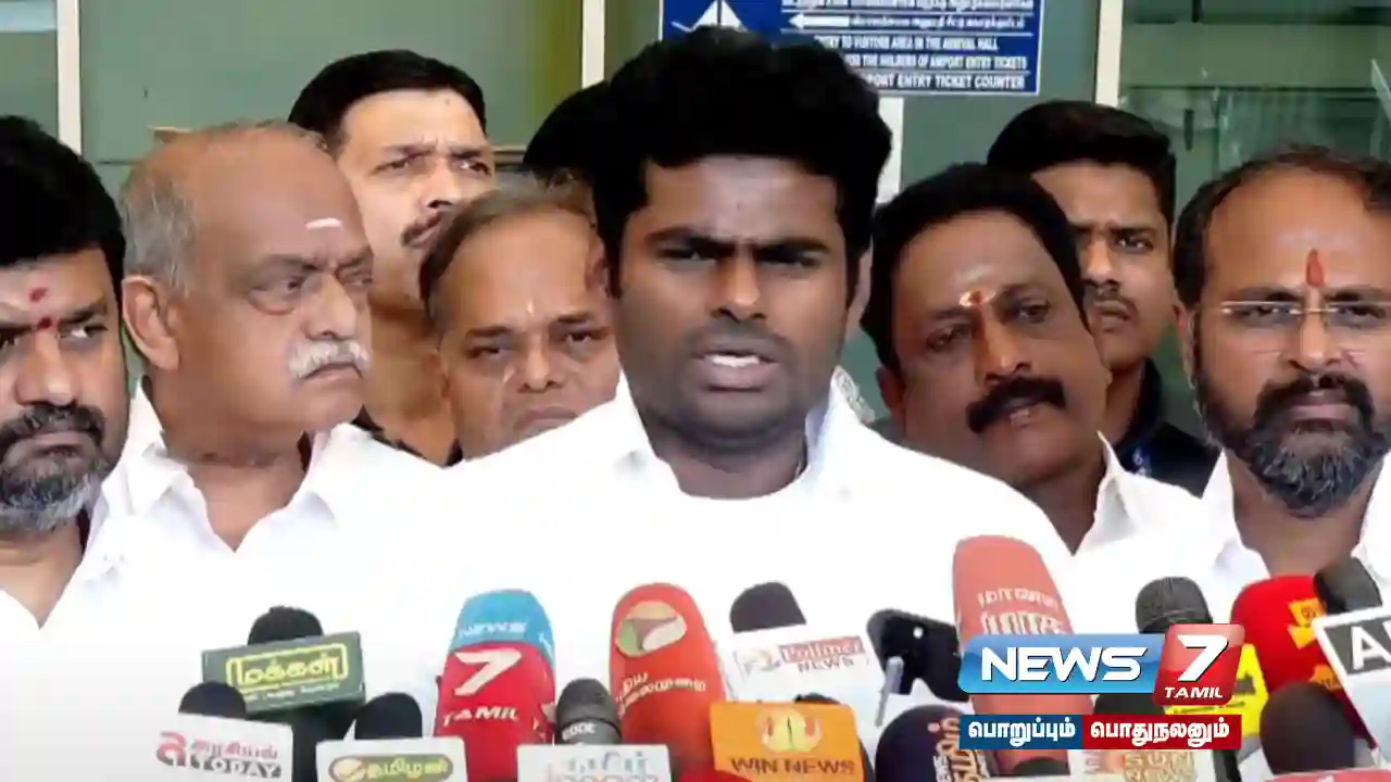 கோவை விமான நிலையத்தில் பாஜக மாநில தலைவர் அண்ணாமலை செய்தியாளர்களை சந்தித்தார்.