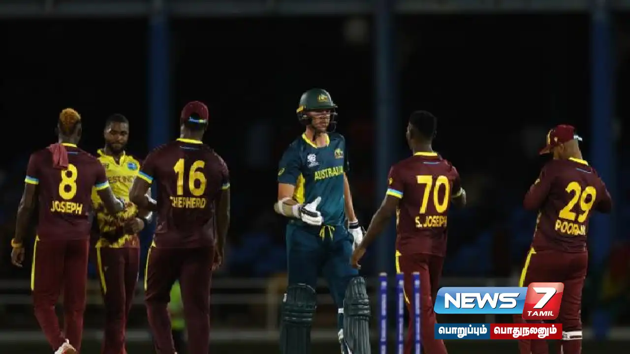 இதையடுத்து, களமிறங்கிய 9 பேர் கொண்ட ஆஸ்திரேலியா அணி 20 ஓவர்கள் முடிவில் 7 விக்கெட்டுகள் இழப்பிற்கு 222 ரன்கள் எடுத்தது. இதில் ஜோஷ் இங்கிலீஷ் 55 ரன்கள், நாதன் எல்லிஸ் 39 ரன்கள், டிம் டேவிட் 25 ரன்கள், ஆடம் ஜாம்பா 21 ரன்களும் எடுத்தனர். அதன்படி, 35 ரன்கள் வித்தியாசத்தில் மேற்கு இந்தியத் தீவுகள் அணி வெற்ற பெற்றது.