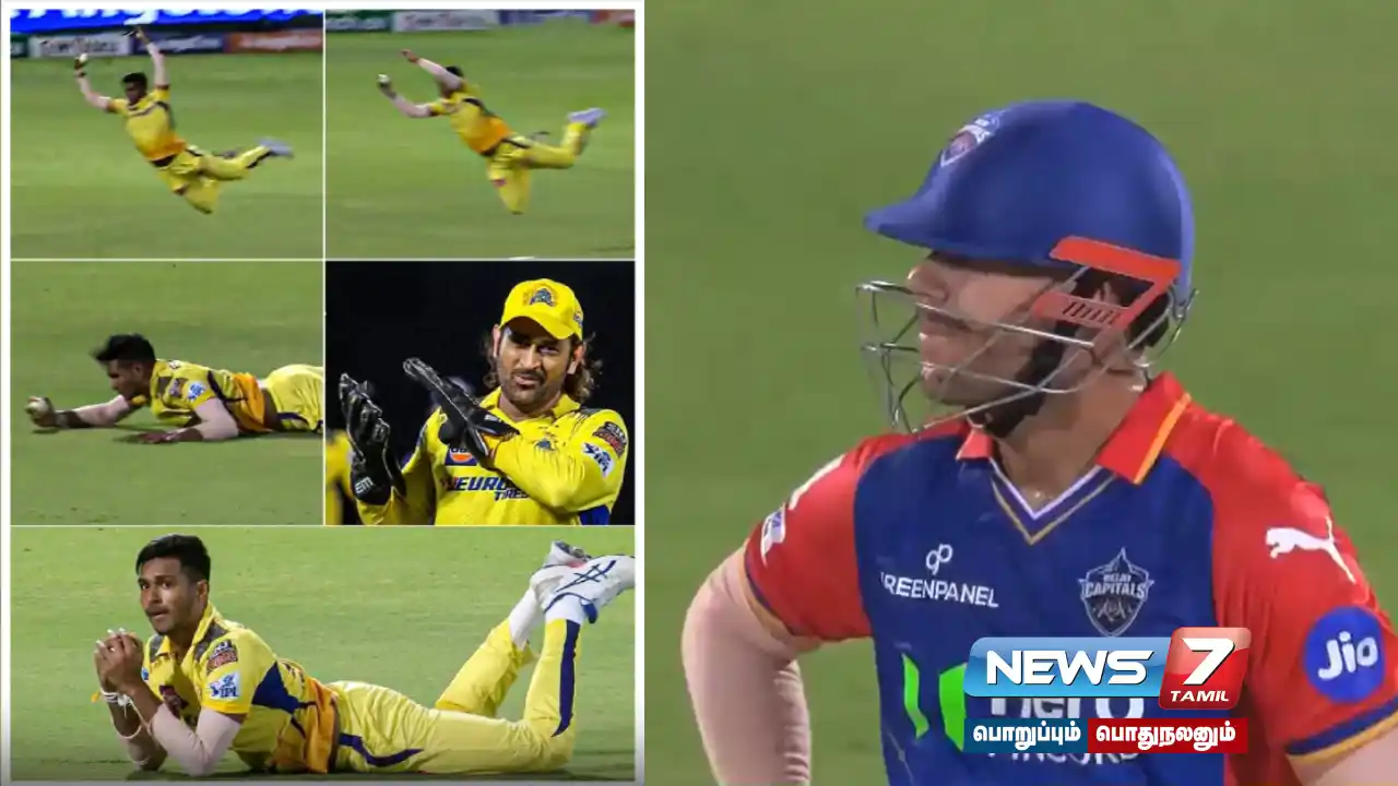 இதில் நிதானமாக தொடங்கி பின்னர் அதிரடியாக விளையாடிய டேவிட் வார்னர், 32 பந்துகளில் ஐபிஎல் கிரிக்கெட்டில் தனது 62ஆவது அரைசதம் அடித்தார். இந்த ஜோடி 9 ஓவர்கள் முடிவில் 91 ரன்கள் எடுத்திருந்த நிலையில், முஷ்தாபிஜூர் ரஹ்மானின் 9.3வது ஓவரின் போது டேவிட் வார்னர் ஸ்வீப் ஷாட் அடிக்க முயற்சித்தார். அப்போது லெக் ஸ்லிப் திசையில் பீல்டிங்கில் நின்றிருந்த மதீஷா பதிரனா பாய்ந்து சென்று ஒரு கையால் கேட்ச் பிடித்தார். இதற்கு தோனி கை தட்டி பாராட்டு தெரிவித்தார். இது தொடர்பான வீடியோ சமூக வலைதளங்களில் வைரலாகி வருகிறது.