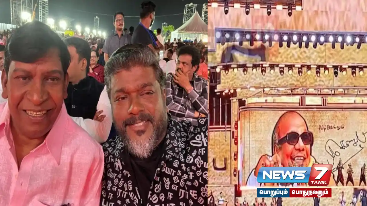 மறைந்த முன்னாள் முதலமைச்சர் கருணாநிதியின் 100வது பிறந்த நாளை முன்னிட்டு திரைத்துறை சார்பில் கலைஞர் 100 விழா சென்னை கிண்டியில் உள்ள ரேஸ் கோர்ஸ் மைதானத்தில் பிரம்மாண்டமாக நேற்று (டிச. 06) நடைபெற்றது. 22000 சீட்டுகள் அமைக்கப்பட்டு 1000த்திற்க்கும் மேற்பட்ட போலீசார் பாதுகாப்பு பணியில் ஈடுபட்டுள்ளனர். 40க்கும் மேற்பட்ட கலை நிகழ்ச்சிகள் நடைபெற்றன.