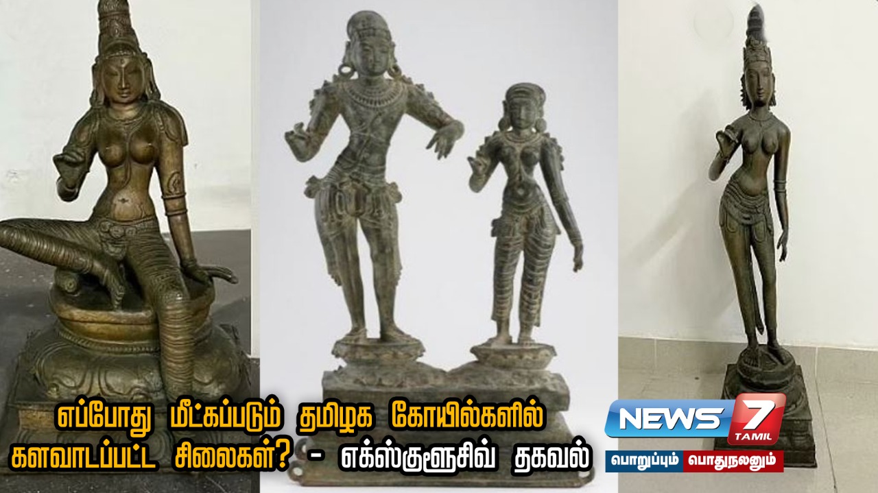 தமிழர்களின் பாரம்பரிய அடையாளமாக இருக்கூடிய இந்த பொக்கிஷங்கள் எப்போது மீண்டு வரப்போகிறது என அனைவரும் எதிர்பார்த்துள்ளனர். கடத்தப்பட்ட 60 சிலைகள் எந்தெந்த நாடுகளில் பதுக்கி வைக்கப்பட்டுள்ளது? எந்தெந்த கோயில்களின சிலைகள் களவாடப்பட்டது? என்பது குறித்த எக்ஸ்குளுசிவ் தகவல்கள் நியூஸ் 7 தமிழுக்கு கிடைத்துள்ளது. அதுகுறித்த விரிவாக பார்க்கலாம்.