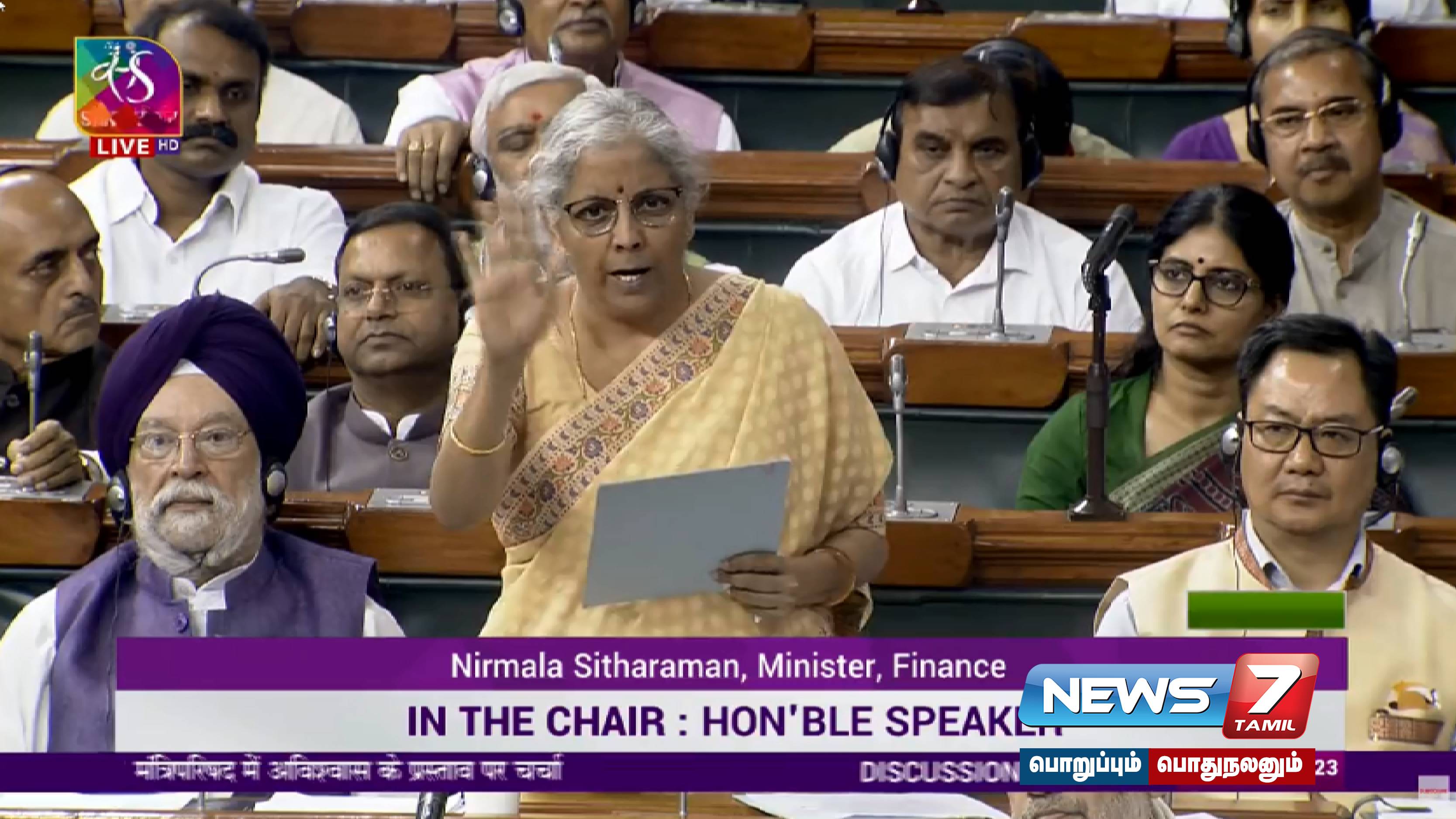 மணிப்பூர் வன்முறை தொடர்பாக பிரதமர் மோடி பதிலளிக்க வலியுறுத்தி மத்திய அரசுக்கு எதிரான நம்பிக்கையில்லா தீர்மானத்தை எதிர்க்கட்சிகள் கொண்டு வந்தனர். இதன் அடிப்படையில் கடந்த இரண்டு நாட்களாக மக்களவையில் காரசார விவாதம் நடைபெற்றது. இந்த விவாதத்திற்கு பதிலளித்து பேசும் விதமாக பிரதமர் மோடி இன்று மாலை 4 மணிக்கு உரையாற்றுகிறார். இந்த நிலையில் நம்பிக்கையில்லா தீர்மானத்தின் மீது நிதியமைச்சர் நிர்மலா சீதாராமன் பேசினார்.