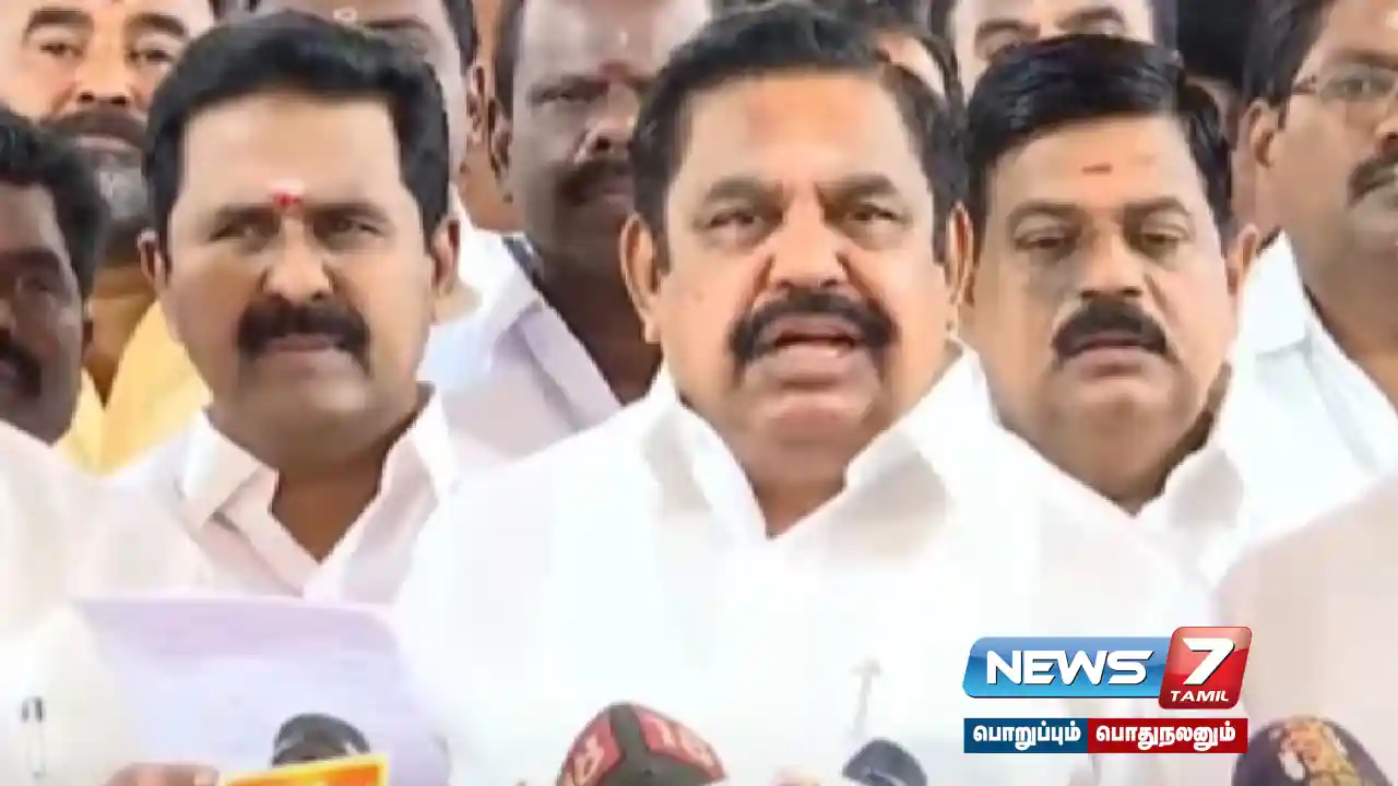 இதற்கு சபாநாயகர் அப்பாவு, விவாதத்திற்கு எடுக்க எடுக்க முடியாது என தெரிவித்தார். சபாநாயகரின் பதிலை ஏற்க மறுத்து அதிமுக எம்.எல்.ஏ.க்கள் சட்டப்பேரவையில் கடும் அமளியில் ஈடுபட்டனர். இதனை தொடர்ந்து எடப்பாடி பழனிசாமி தலைமையில் அதிமுக உறுப்பினர்கள் சட்டசபையில் இருந்து வெளிநடப்பு செய்தன. இந்த நிலையில் சட்டப்பேரவை வளாகத்தில் எடப்பாடி பழனிசாமி செய்தியாளர்களை சந்தித்து பேசினார். அப்போது,