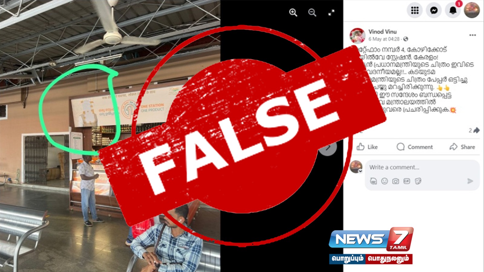 கேரளாவின் கோழிக்கோடு ரயில் நிலையத்தில் உள்ள கடையின் முன் வைக்கப்பட்டிருந்த பிரதமர் நரேந்திர மோடியின் படம், மறைத்து வைக்கப்பட்டுள்ளதாகக் கூறி ஒரு பதிவு புகைப்படத்துடன் பரப்பப்பட்டு வருகிறது.