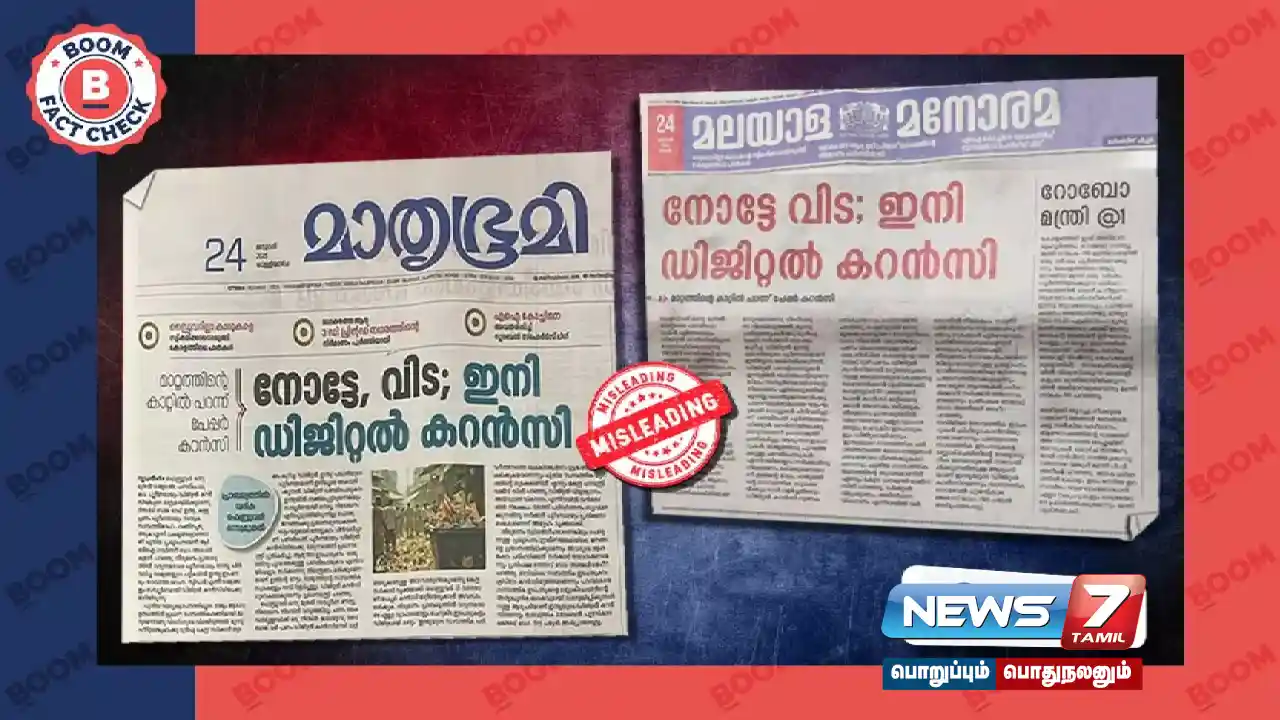 கேரளாவின் முன்னணி செய்தித்தாள்களில் வெளியான முதல் பக்க விளம்பரம், இந்திய அரசாங்கம் பிப்ரவரி 1, 2025 முதல் புழக்கத்தில் இருக்கும் நாணயத்தை தடை செய்து டிஜிட்டல் நாணயத்திற்கு மாறும் என்று மக்களை தவறாக வழிநடத்தும் விதமாக சமூக ஊடகங்களில் குழப்பத்தையும் பீதியையும் ஏற்படுத்தியது.