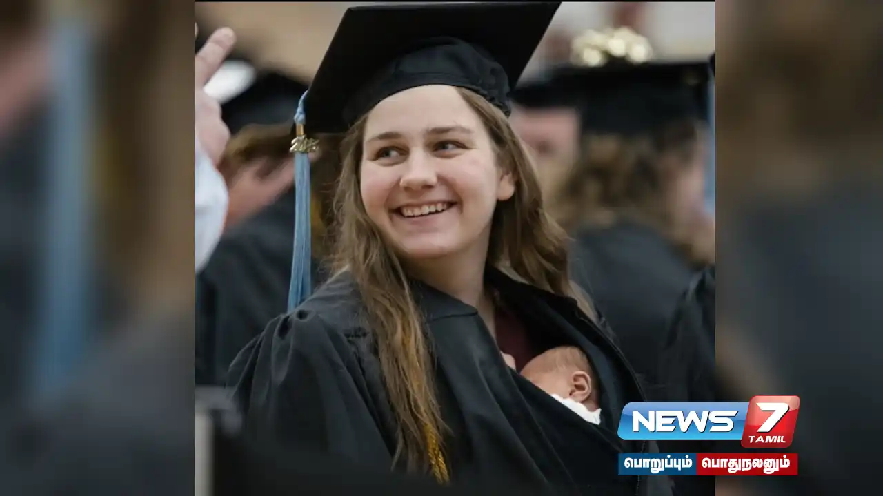 அமெரிக்காவில் பிறந்து 10 நாளே ஆன குழந்தையுடன் பெண் ஒருவர் பட்டம் பெற்ற சம்பவம் சுவாரஸ்யத்தை ஏற்படுத்தியுள்ளது.