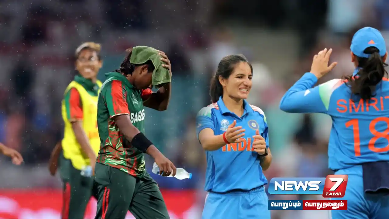 அதில் டாஸ் வென்ற இந்திய அணி பந்துவீச்சை தேர்வு செய்தது. மீண்டும் மழை குறுக்கிட்டதால் ஆட்டம் 27 ஓவர்களாக குறைக்கப்பட்டது. அதன்படி முதலில் பேட்டிங் செய்த வங்காளதேச அணி 27 ஓவர்களில் 9 விக்கெட்டுகள் இழப்பிற்கு 119 ரன்கள் எடுத்தது. வங்காளதேச அணியின் சார்பில் அதிகபட்சமாக ஷர்மின் அக்தர் 36 ரன்களும், சோபனா மோஸ்டரி 26 ரன்களும் எடுத்தனர். இந்திய அணியின் ராதா யாதவ் 3 விக்கெட்டுகளையும், ஸ்ரீசராணி 2 விக்கெட்டுகளையும் கைப்பற்றினர்.
