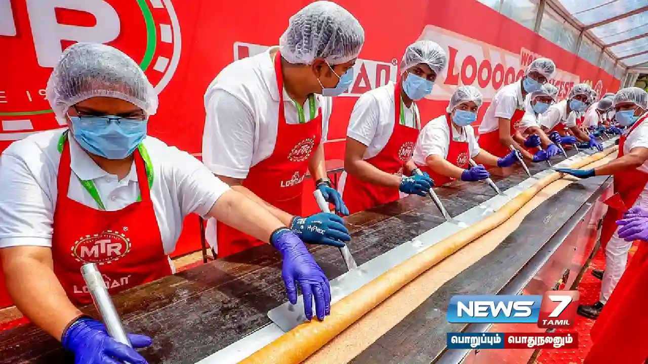 பெங்களூரில் 75 சமையல் கலைஞர்கள் ஒன்றிணைந்து 123 அடி நீளமுடைய தோசையை உருவாக்கி கின்னஸ் சாதனை படைத்துள்ளனர்.
