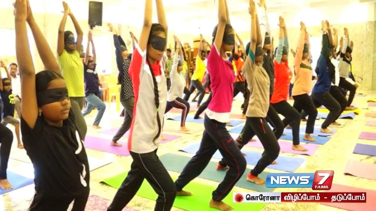 கண்தானத்தை வலியுறுத்தி கண்களைக் கட்டிக்கொண்டு 27 வகையான ஆசனங்களை 118 பேர் செய்து உலக சாதனை நிகழ்த்தினர்.