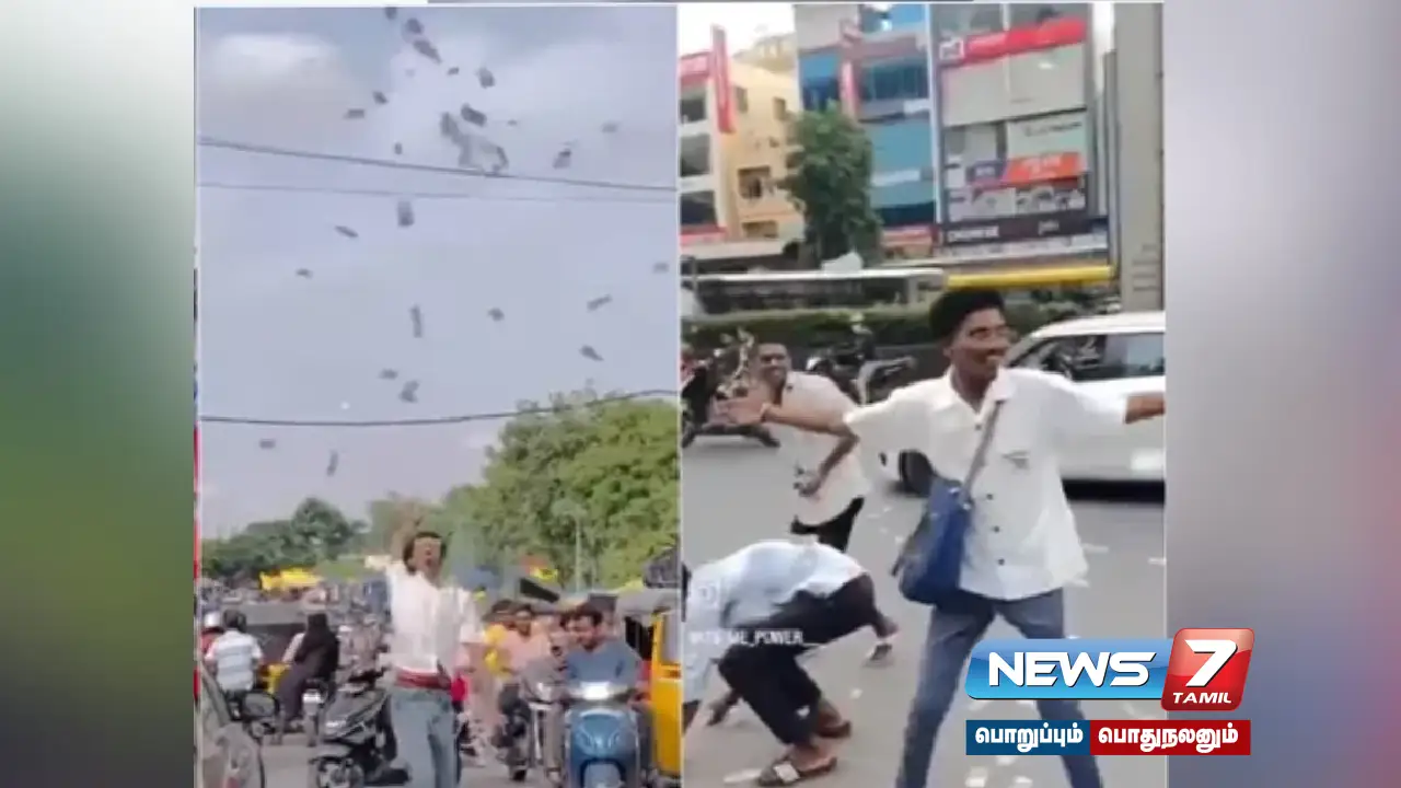 ஹைதராபாத் அருகே போக்குவரத்து நெரிசல் மிகுந்த சாலையில் ரூபாய் நோட்டுகளை தூக்கி வீசிய யூடியூபரால் பரபரப்பு ஏற்பட்டுள்ளது.